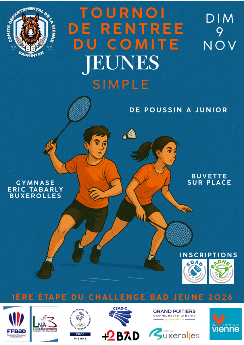 Etape 1 du Challenge Bad Jeune 2026 de la Vienne, organisé par le comité départemental.